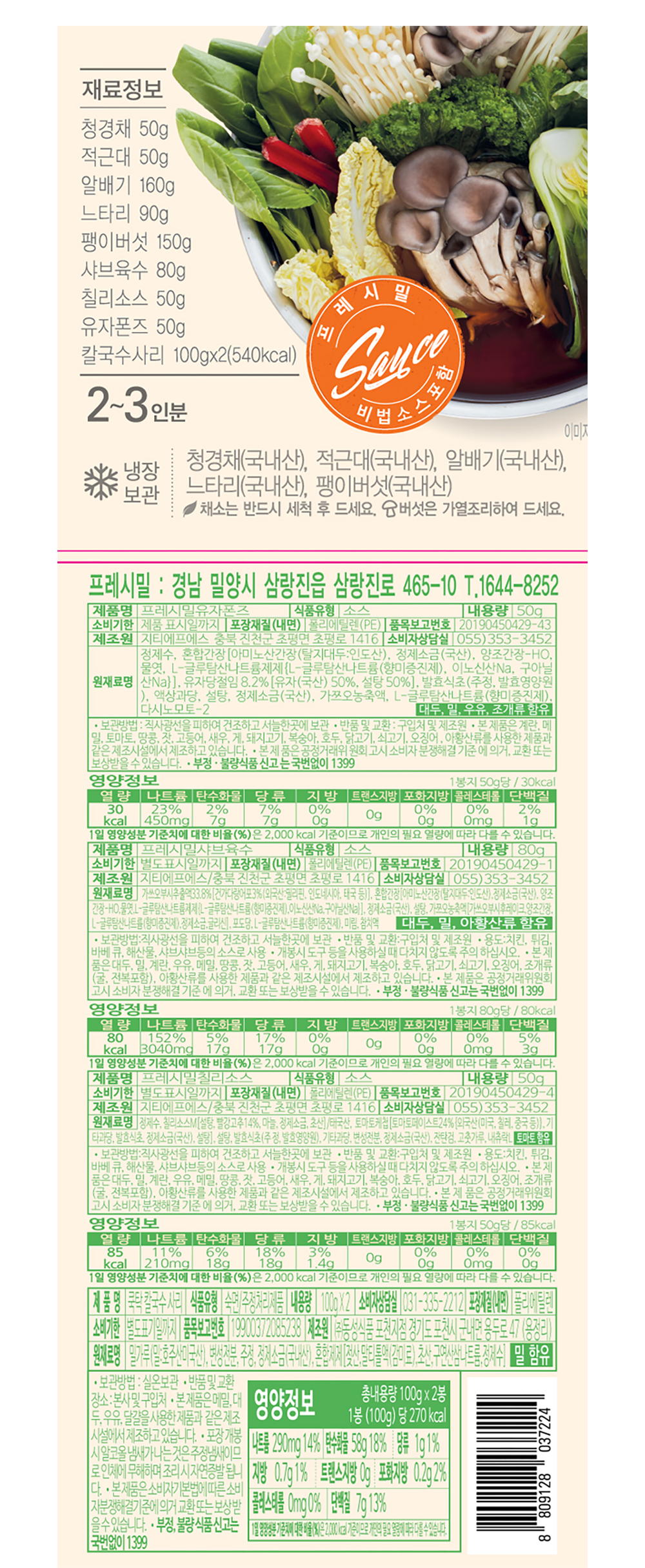 선도 및 품질 관리를 위해 각각의 재료별로 개별 포장이 되어 있습니다.