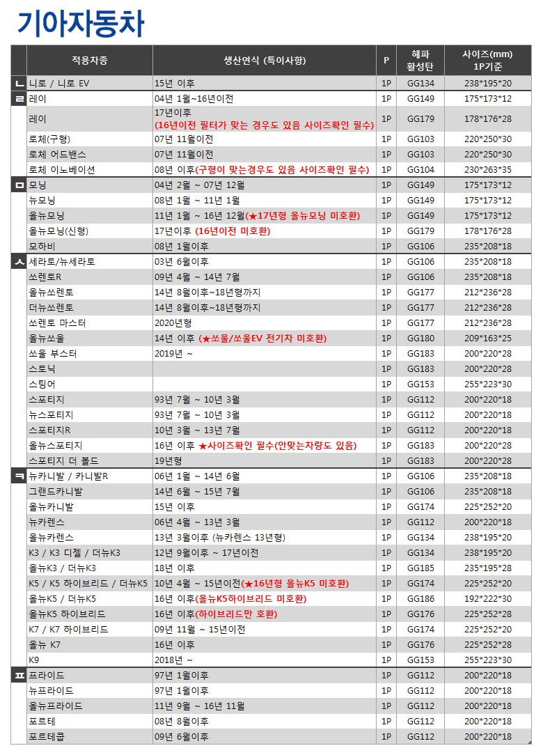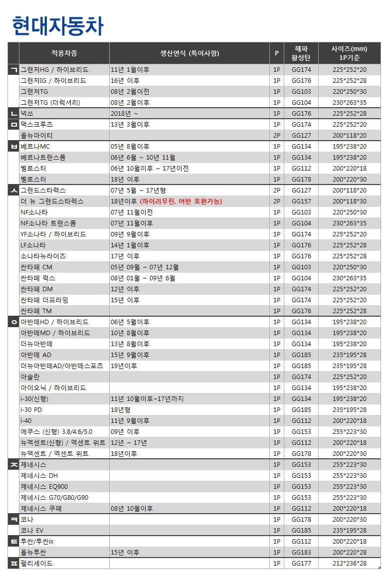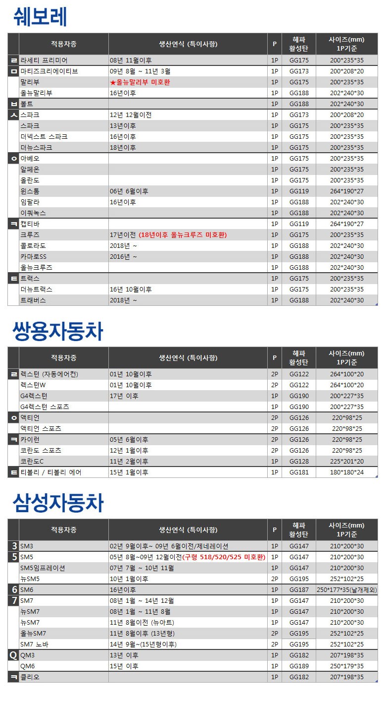 | 제조국 | 대한민국 | 크기 | 차종별상이 |