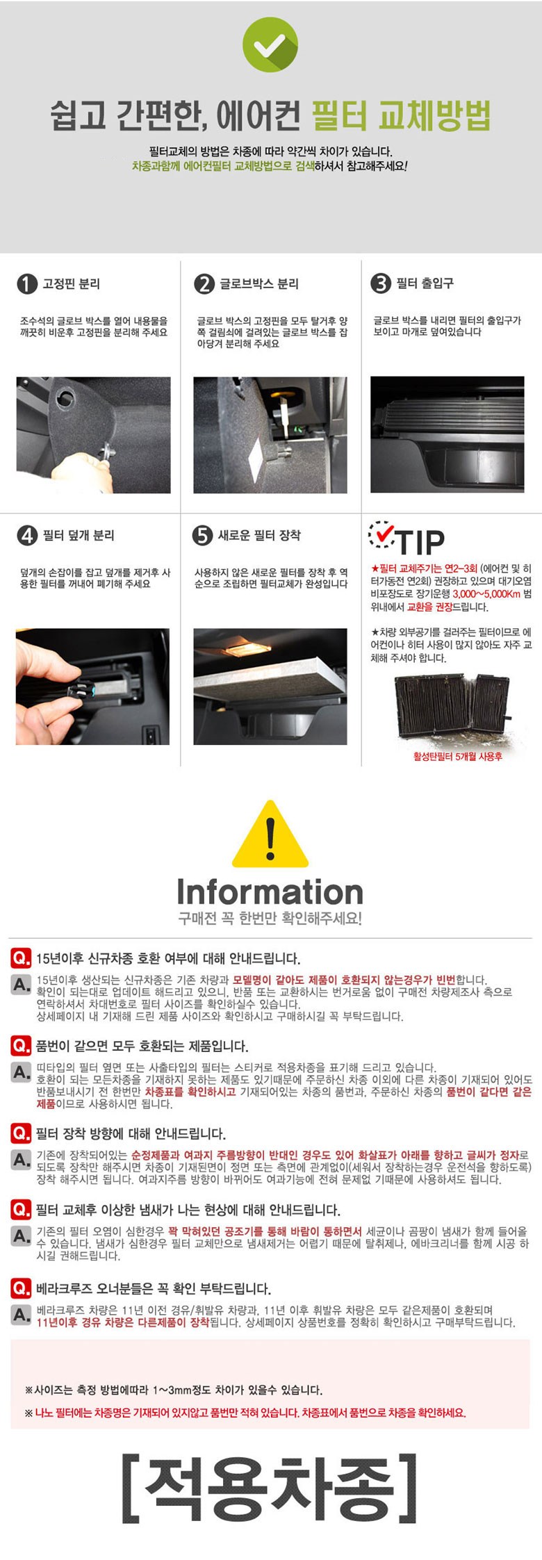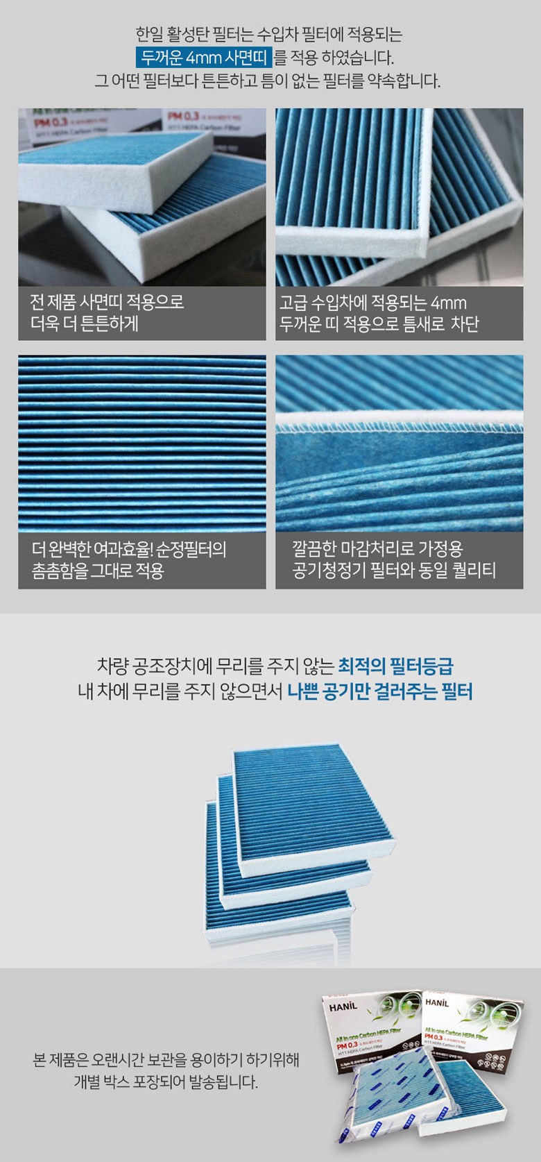 | 품명 및 모델명 | 한일 차량용 프리미엄 활성탄 자동차에어컨필터 | 동일모델 출시년월 | 2019년 7월 |