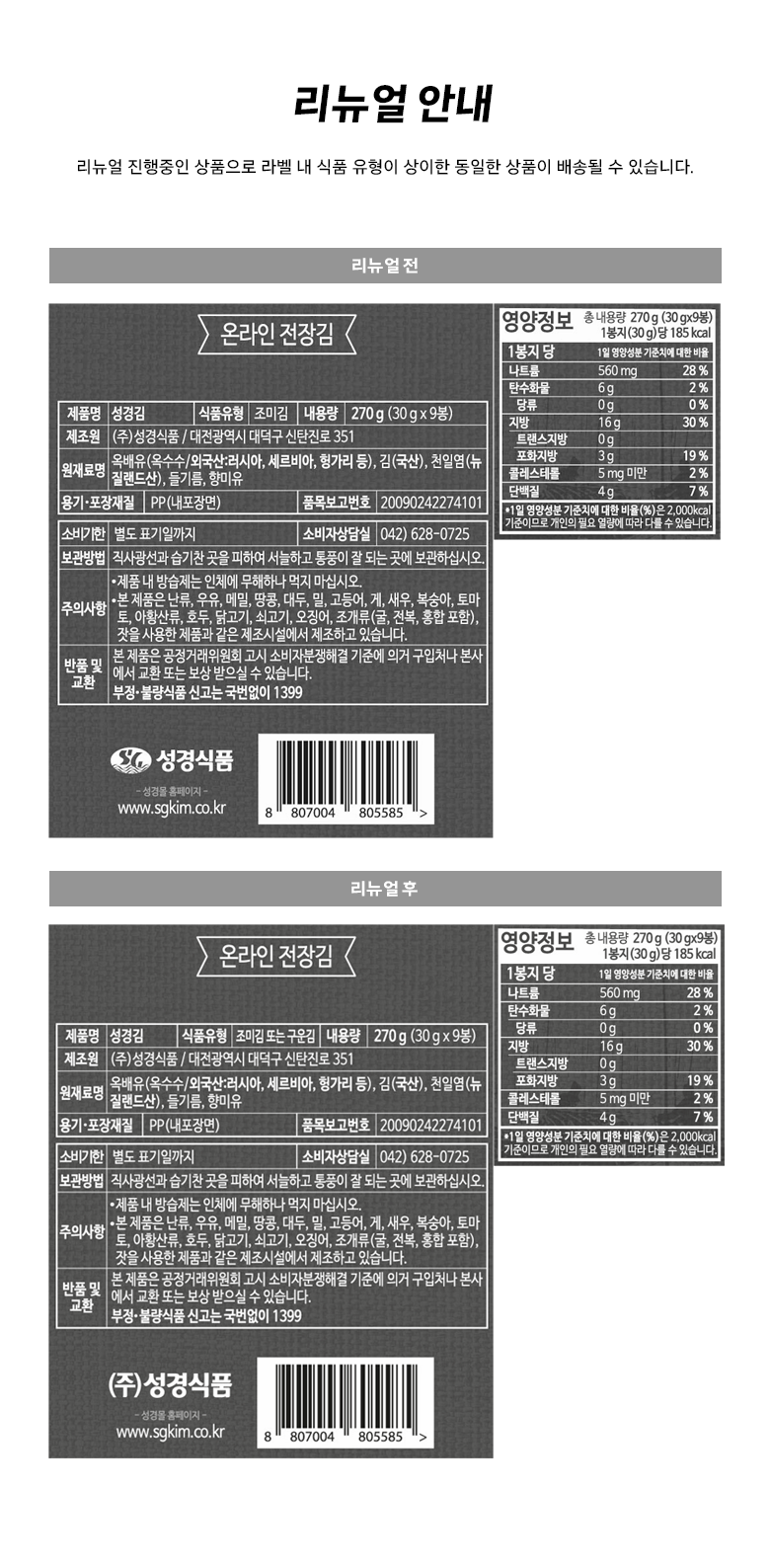 | 제품명 | 컨텐츠 참조 | 식품의 유형 | 컨텐츠 참조 |