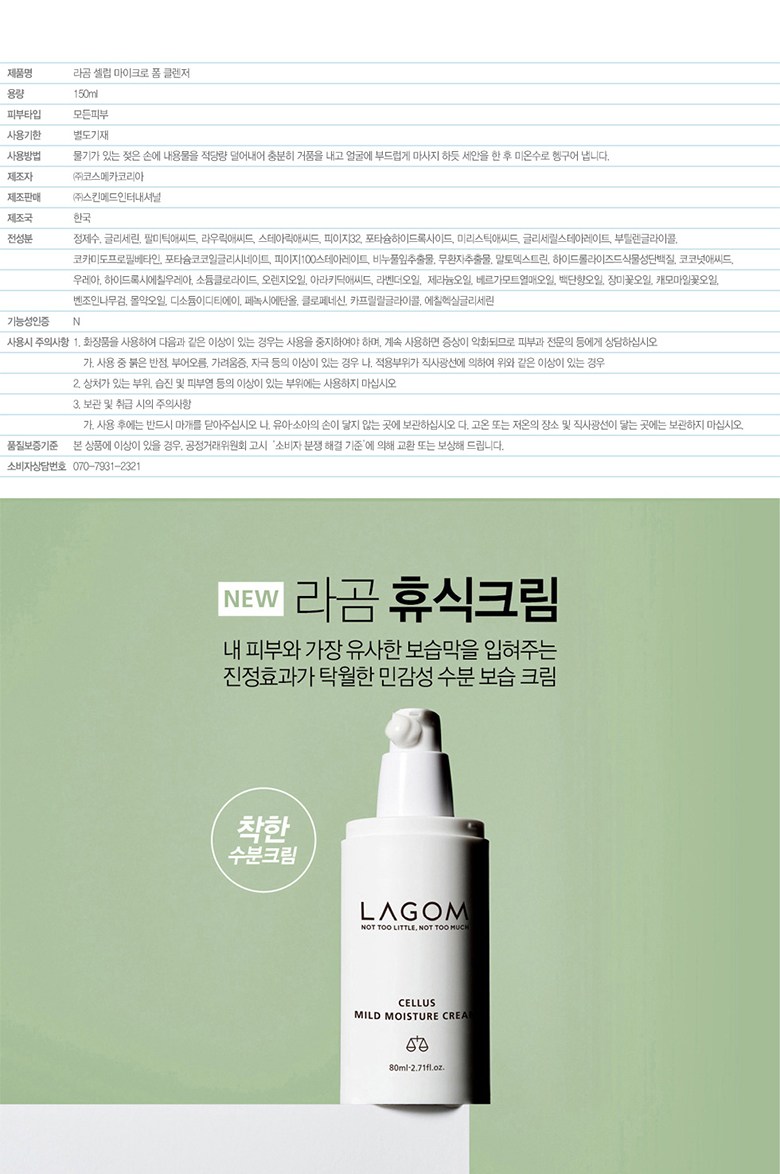 | 용량(중량) | 라곰 셀러스 미스트 토너 150ml + 라곰 셀러스 마일드 모이스쳐 크림 80m + 라곰 셀럽 마이크로 폼 클렌저 150ml | 제품 주요 사양 | 모든피부용 |
