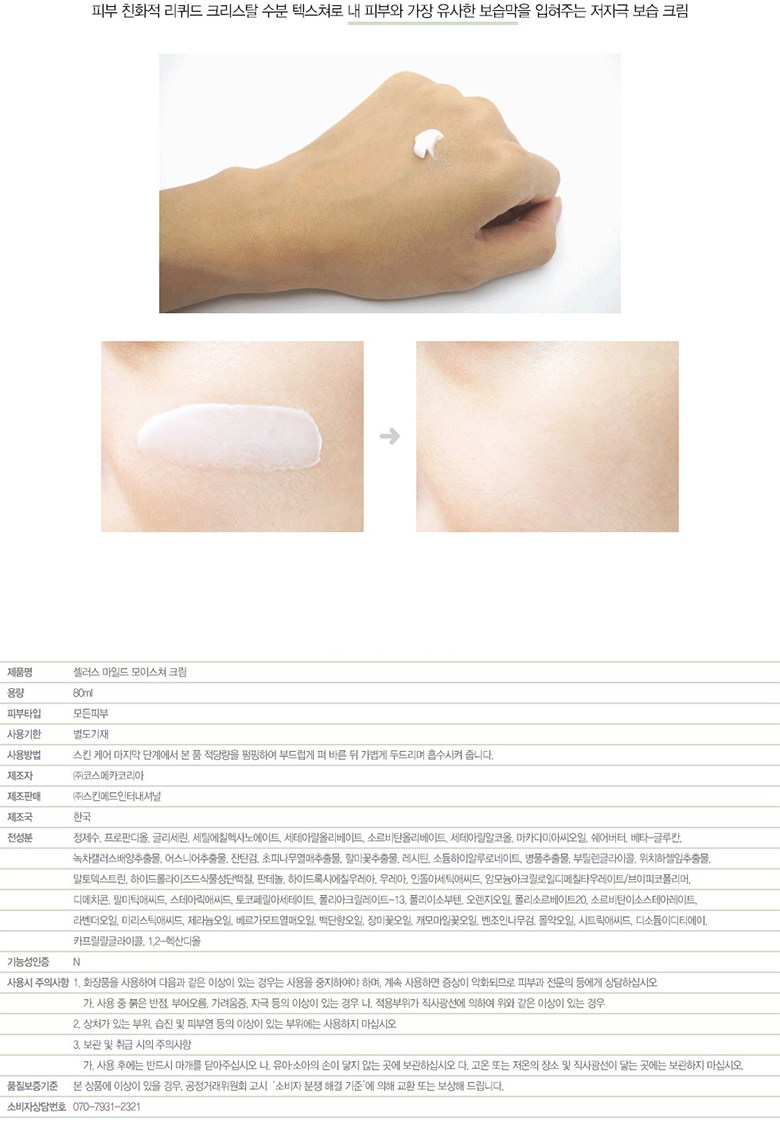 | 화장품제조업자, 화장품책임판매업자 및 맞춤형화장품판매업자 | 마이크로 폼 클렌저 , 모이스쳐크림 : (주)코스메카코리아 / (주)스킨매드인터내셔널 ㅣ미스트 토너 : 코스맥스(주)/(주)스킨메드인터내셔널 | 제조국 | 한국 |