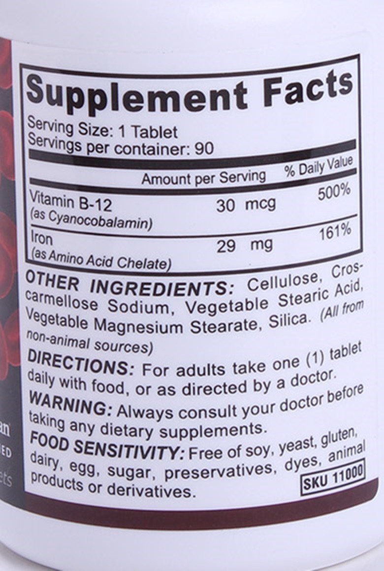 철분 식이 보조제입니다. 1인분 당 비타민 B-12, 철분을 제공합니다.