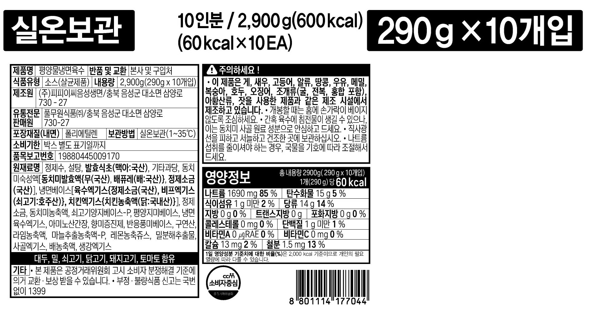 | 포장단위별 내용물의 용량(중량), 수량 | 290g x 30개 | 원재료명 및 함량 | 컨텐츠 참조 |