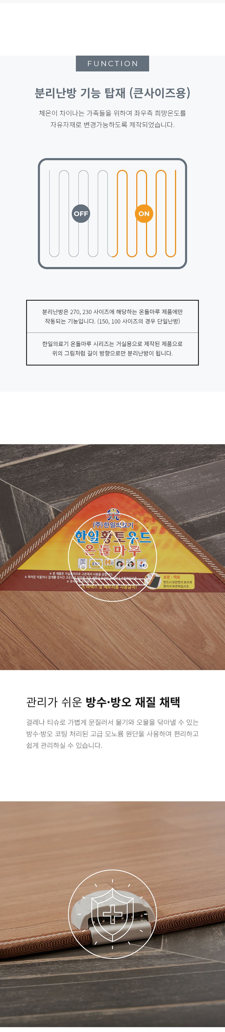 ※ 한일의료기 원목마루의 경우 자사의 제품인 황토 참숯 온돌마루 제품과 동일한 기능과 성능을 가진 제품으로써,
