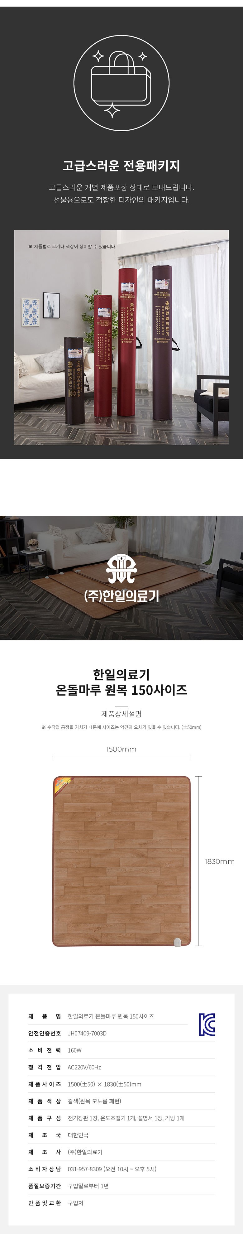 | 품명 및 모델명 | HL-M5150 / 한일 원목마루 전기매트 | KC 인증정보 | JH07409-7003D |