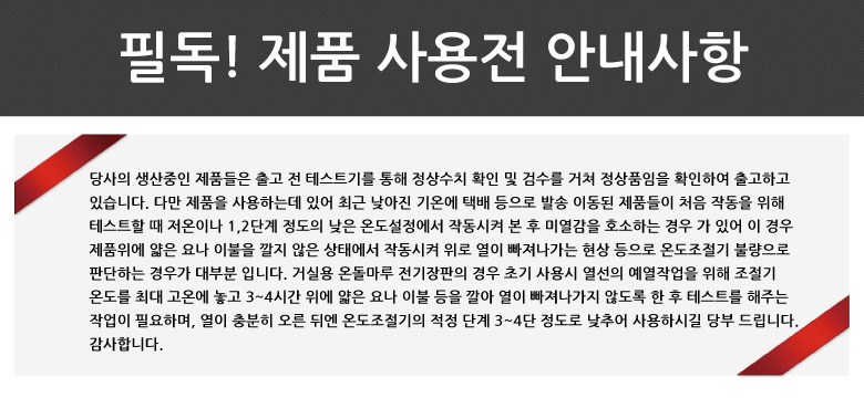공용 거실용 제품 설명서인 "황토 참숯 온돌마루"설명서를 동봉하여 보내드리는 점 구매시 참고 부탁드립니다.