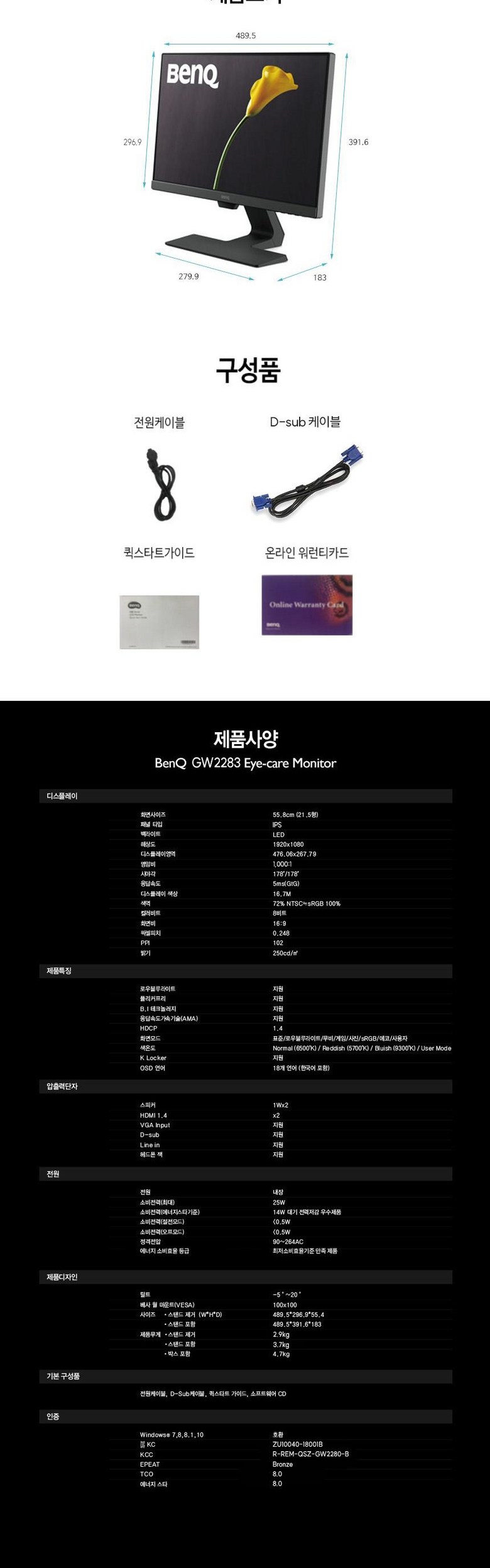 | 품명 및 모델명 | 벤큐 GW2283 | KC 인증정보 | R-REM-QSZ-GW2280-B / ZU10040-18001B |