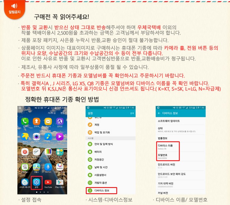 - ㆍ모니터 해상도의 차이로 인해 색상이나 이미지가 실제와 달라, 고객이 단순 변심으로 교환/반품을 무료로 요청하는 경우