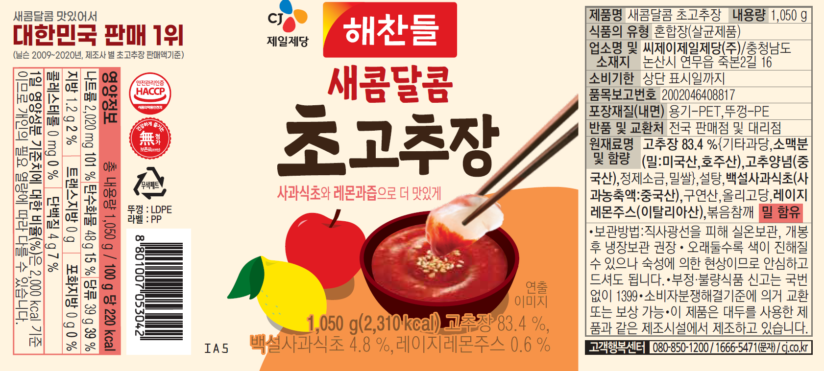 - 고추장 포장타입: 용기/통