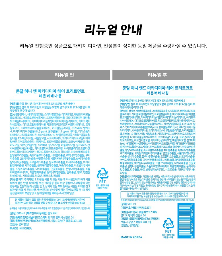 | 용량(중량) | 컨텐츠 참조 | 제품 주요 사양 | 모든 모발용 |