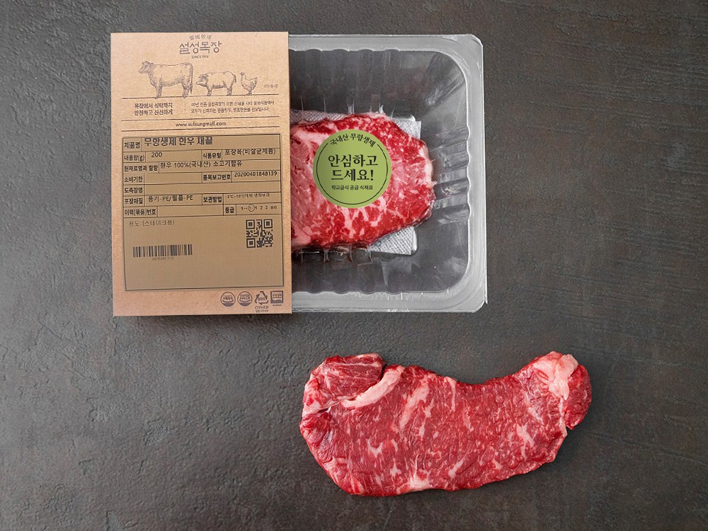 식탁 위에 신선한 한우만을 전하는 설성목장의 채끝살이에요. 채끝살은 소고기 본연의 깊은 풍미를 잘 느낄 수 있는 부위로, 지방이 적고 살코기가 많아 야들야들 부드러운 식감이 좋은데요. 설성목장의 채끝살은 깨끗하고 선명한 마블링을 자랑하지요. 1+등급으로 엄선하고 무항생제 인증까지 받아 더욱 안심하고 먹을 수 있어요. 두께가 도톰해 스테이크를 굽기에 적합한 제품이랍니다.