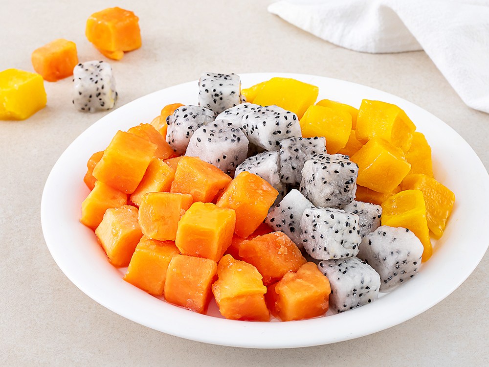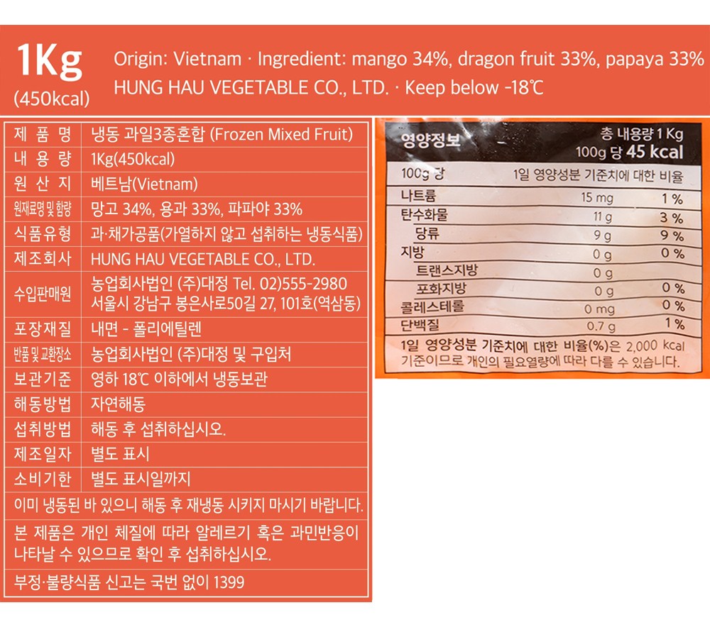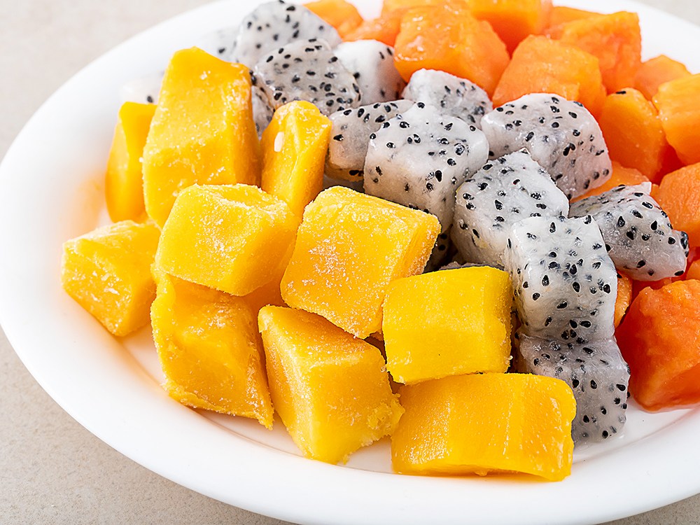 냉동 과일의 장점은 손질의 번거로움을 덜어준다는 것과 보관법을 고민하지 않아도 된다는 것이지요. 지금 소개해드릴 냉동 과일 3종 혼합도 열대과일을 먹기 좋게 손질하고 신선한 그대로 얼린 제품이에요. 달콤하고 부드러운 망고, 톡톡 튀는 씨의 식감까지 맛있는 용과, 새콤달콤한 파파야까지. 세 가지 신선한 과일을 담아 풍성한 맛과 식감을 즐길 수 있답니다.