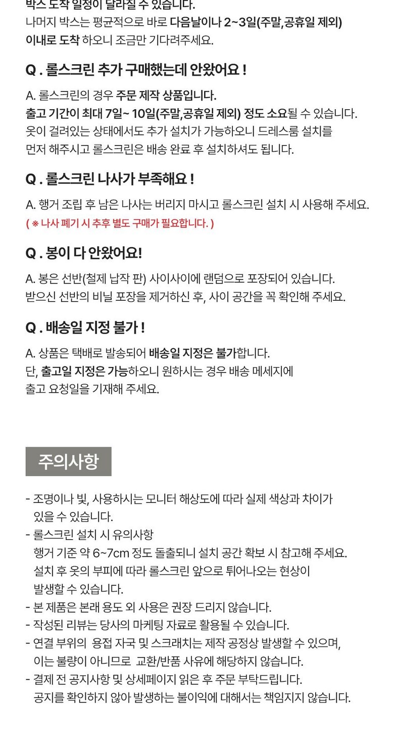 - ㆍ모니터 해상도의 차이로 인해 색상이나 이미지가 실제와 달라, 고객이 단순 변심으로 교환/반품을 무료로 요청하는 경우