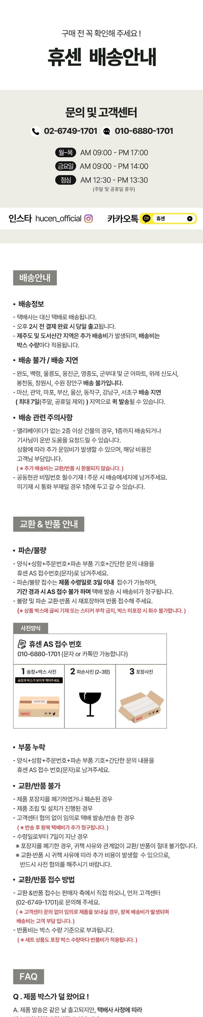 - ㆍ교환/반품에 관한 일반적인 사항은 판매자가 제시사항보다 관계법령이 우선합니다.