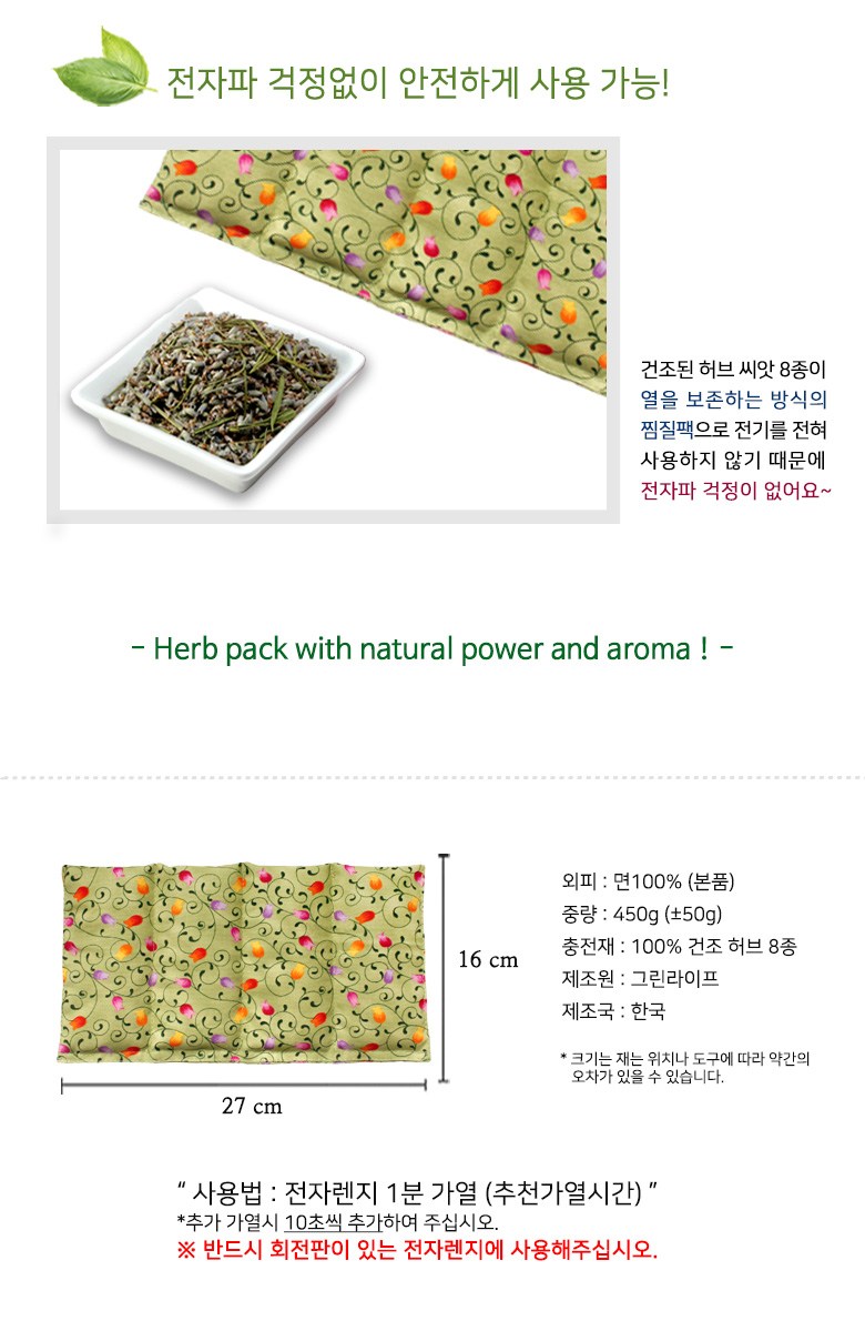| 품명 및 모델명 | 그린라이프 허브찜질팩 다용도 | 인증/허가 사항 | 해당없음 |