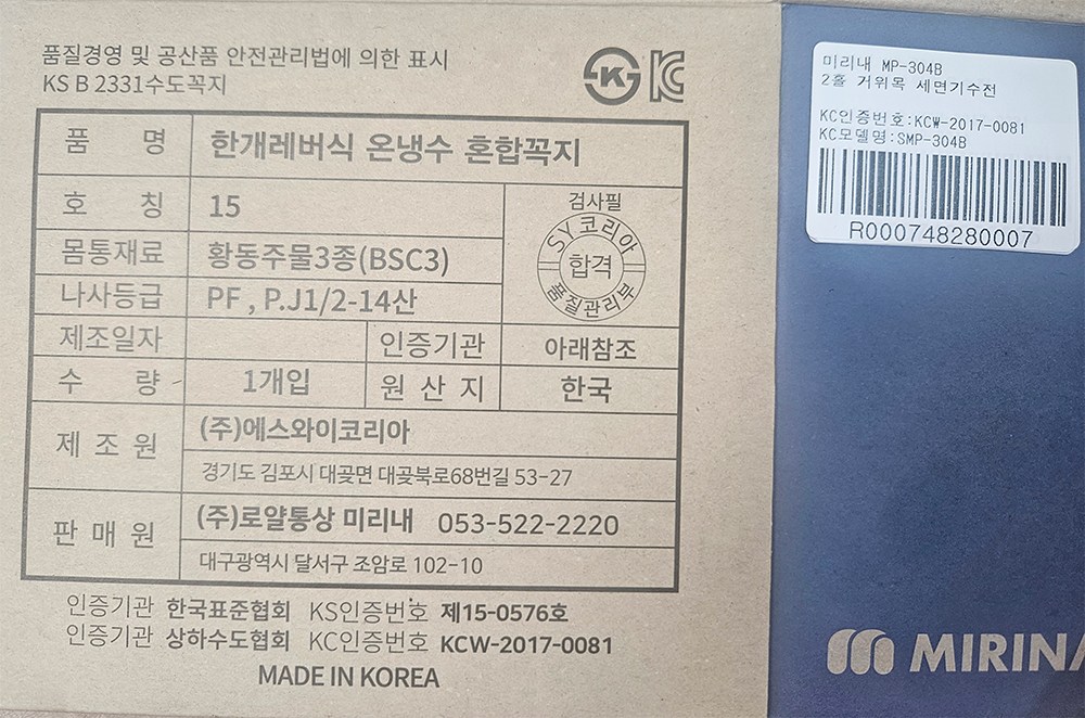 | 품명 및 모델명 | 미리내/SMP-304B | 인증/허가 사항 | KCW-2017-0081, KS B 2331 제 15-0576호 |