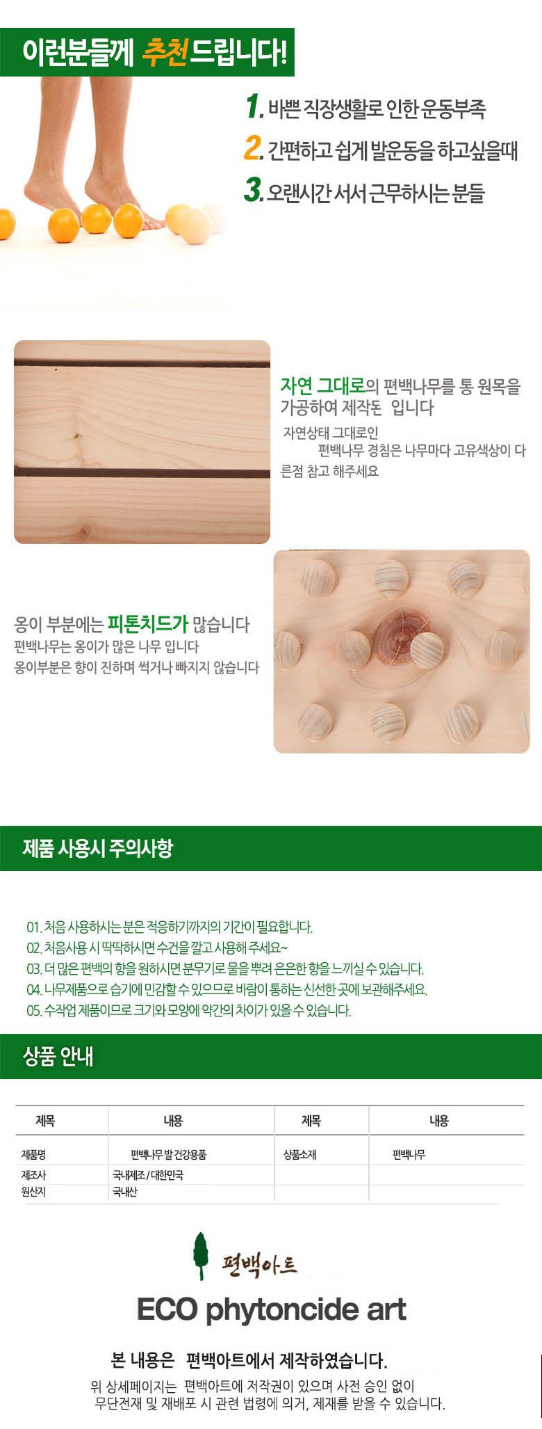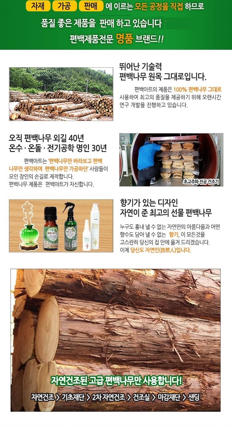 | 제조국(원산지) | 한국 | 제조자(수입자) | 친환경편백아트 |
