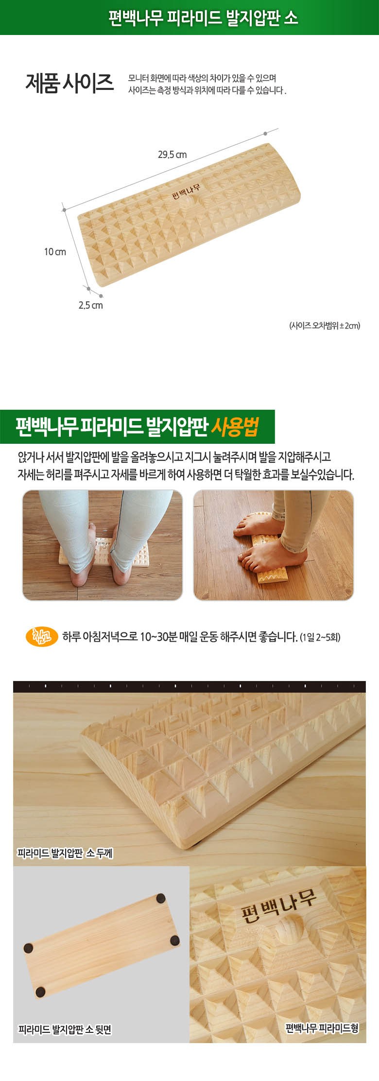 | 품명 및 모델명 | 편백나무 반달 발지압기 | 인증/허가 사항 | 해당사항없음 |