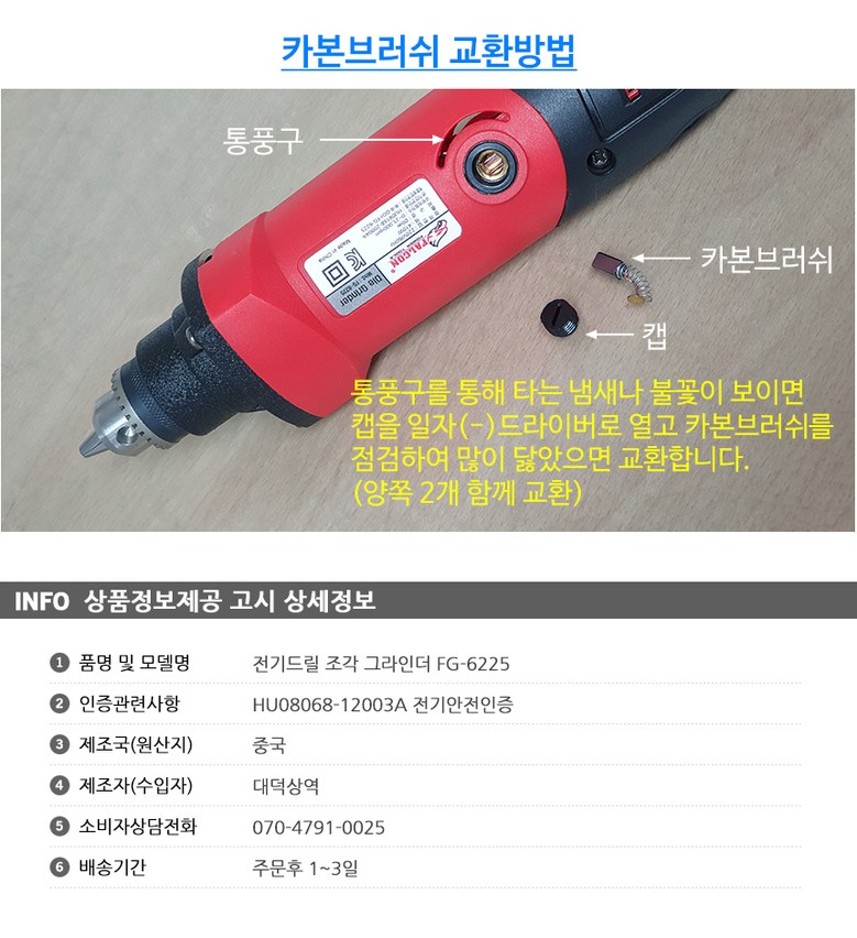 | 품명 및 모델명 | 품명:전기드릴그라인더 FD-6R / 모델명:- | 인증/허가 사항 | 법에 의한 인증·허가 등을 받았음을 확인할 수 있는 경우 그에 대한 사항:상세설명참조 |