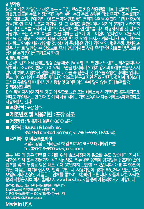 | 제조국(원산지) | 미국 | 제조자(수입자) | Bausch&Lomb Inc / 바슈롬코리아 |