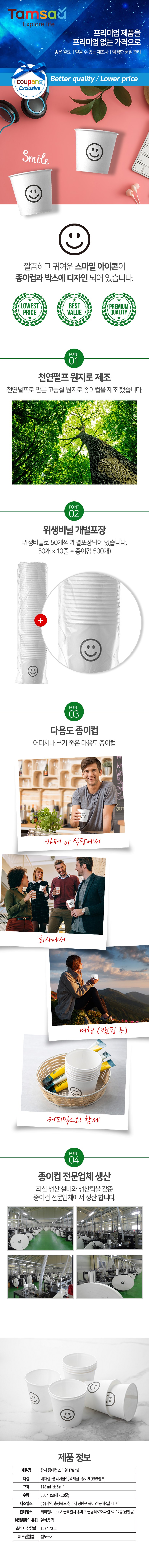 | 품명 및 모델명 | 탐사 스마일 종이컵 | 인증/허가 사항 | 위생용품 |
