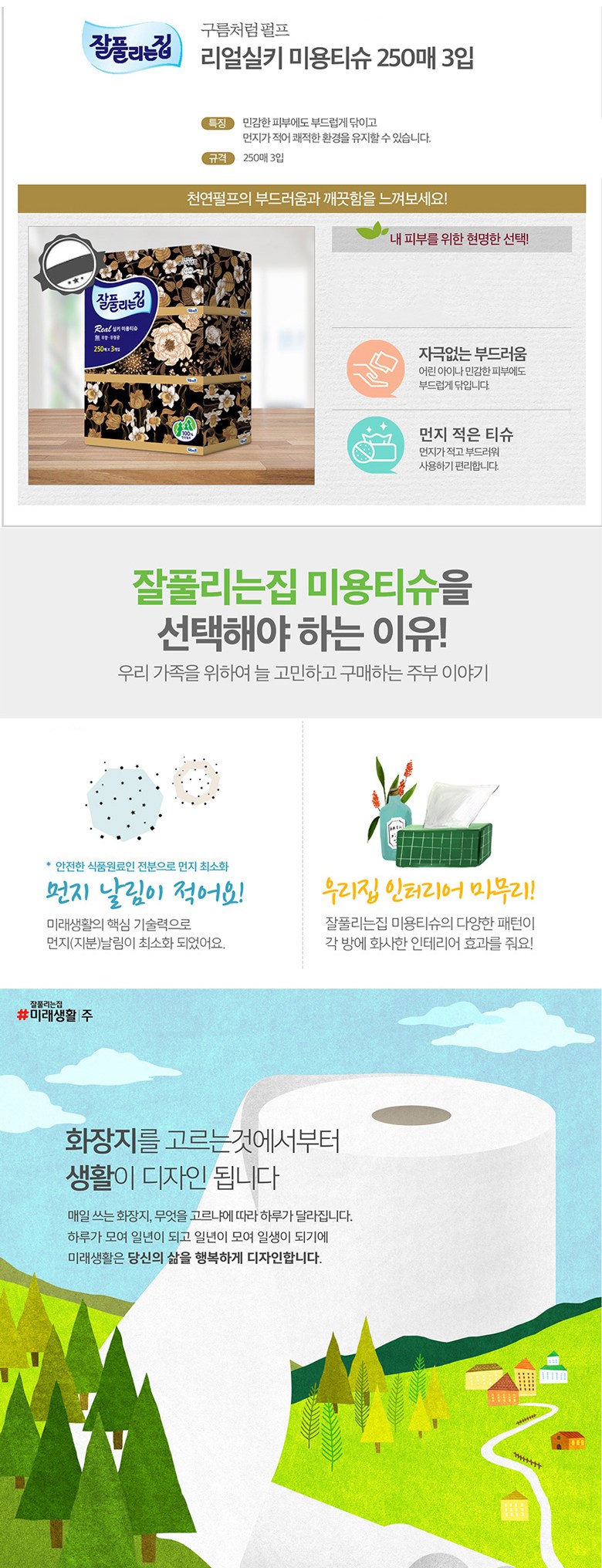 | 품명 및 모델명 | 잘풀리는집 리얼실키 미용티슈 | 인증/허가 사항 | 위생용품 |
