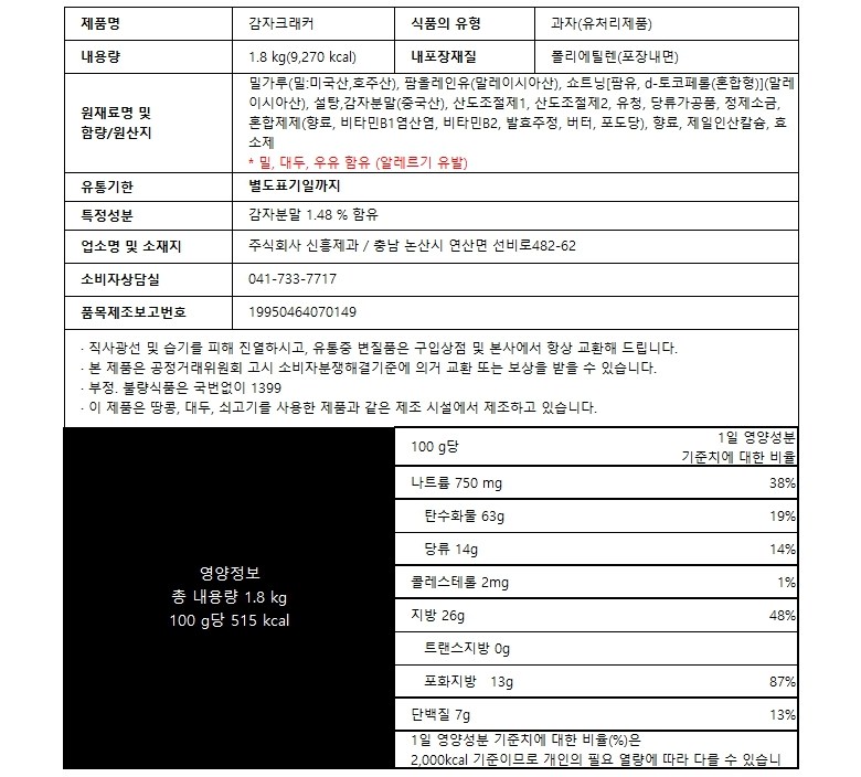 | 제품명 | 상품 상세페이지 참조 | 식품의 유형 | 상품 상세페이지 참조 |