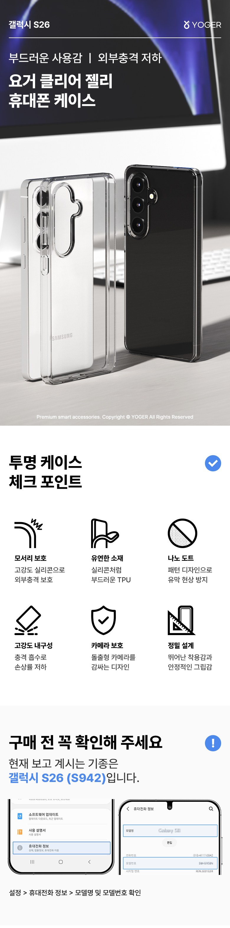 | 품명 및 모델명 | 요거 클리어 젤리 휴대폰 케이스, 갤럭시 S26 | 인증/허가 사항 | 해당없음(14세이상) |