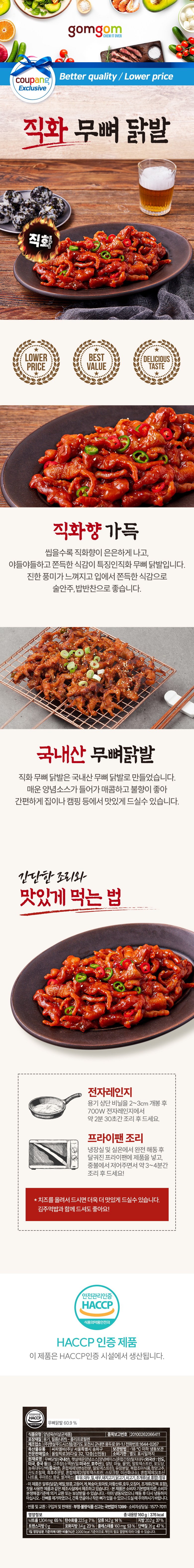 | 제품명 | 직화무뼈닭발 | 식품의 유형 | 컨텐츠 참조 |