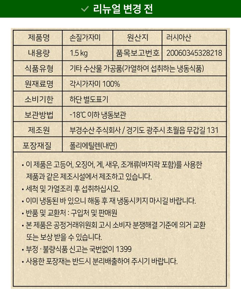 다만, 판매자의 제시사항이 관계법령보다 소비자에게 유리한 경우에는 판매자 제시사항이 적용됩니다.