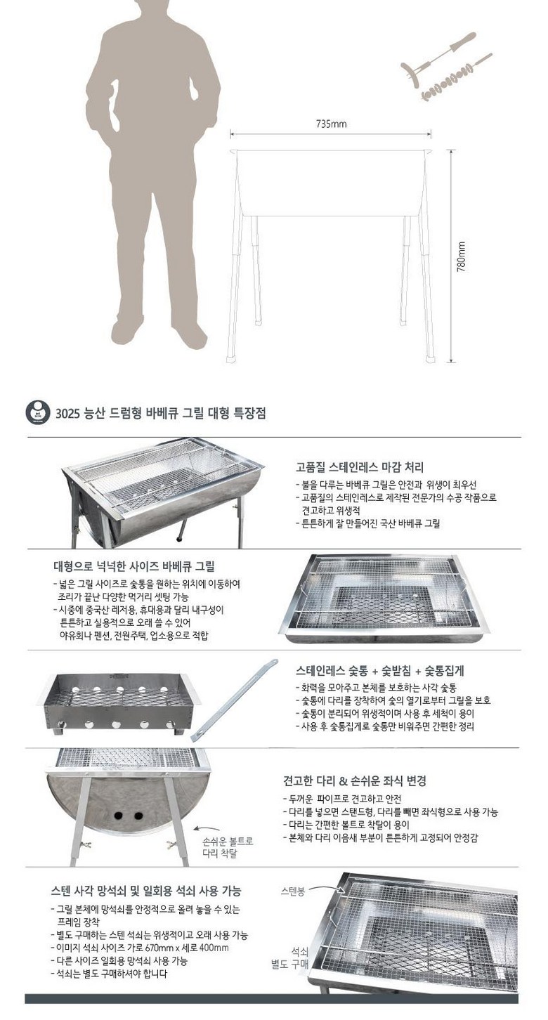| 구성품 | 몸통+다리+숯통+숯망+숯통집게 | 크기 | 제품 상세페이지 참고 |