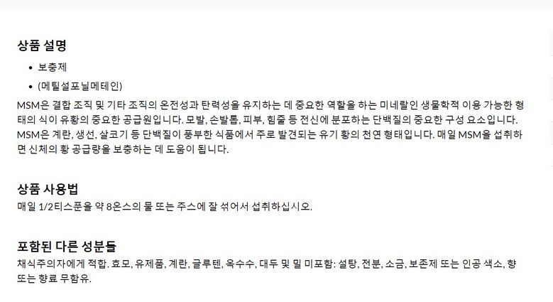 | 원료명 및 함량 | 상품 상세페이지 참조 | 영양정보 | 상품 상세페이지 참조 |