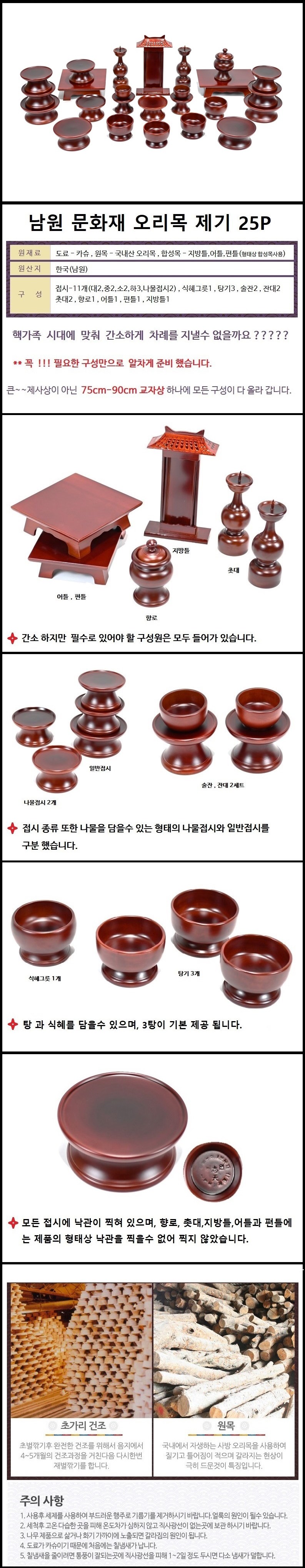 | 품명 및 모델명 | 남원목기 문화재 간편 실속 오리목 제기 25p 세트 | 재질 | 컨텐츠 참조 |