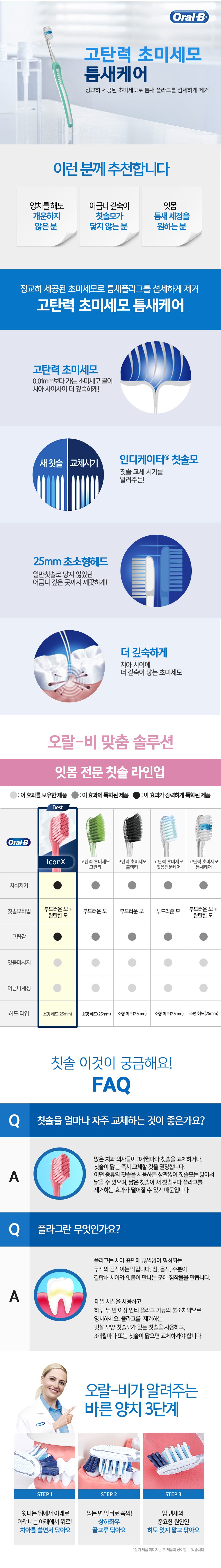 | 품명 및 모델명 | 오랄비 고탄력 초미세모 틈새 케어 칫솔 | 인증/허가 사항 | 해당없음(14세이상) |