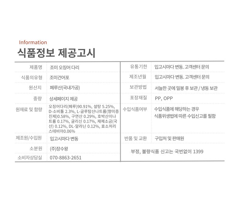 - 종류: 조미오징어