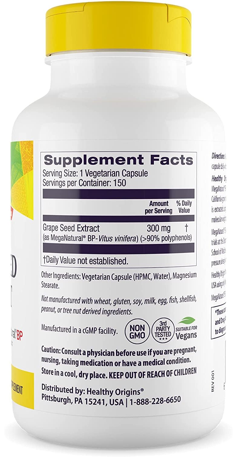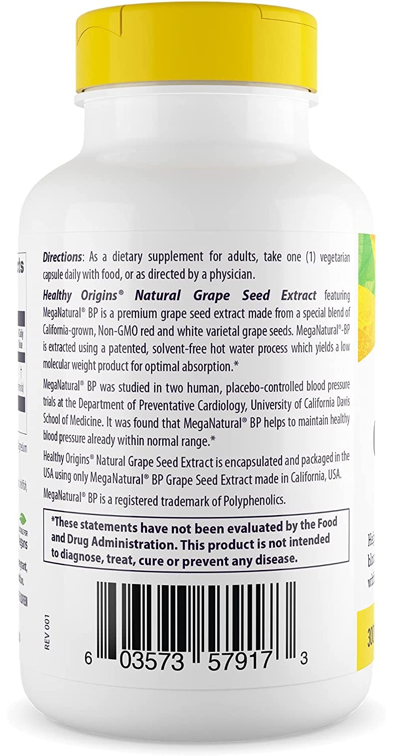 헬시오리진스 메가내추럴-Bp 그레이프 씨드 추출물 300 mg 베지 캡