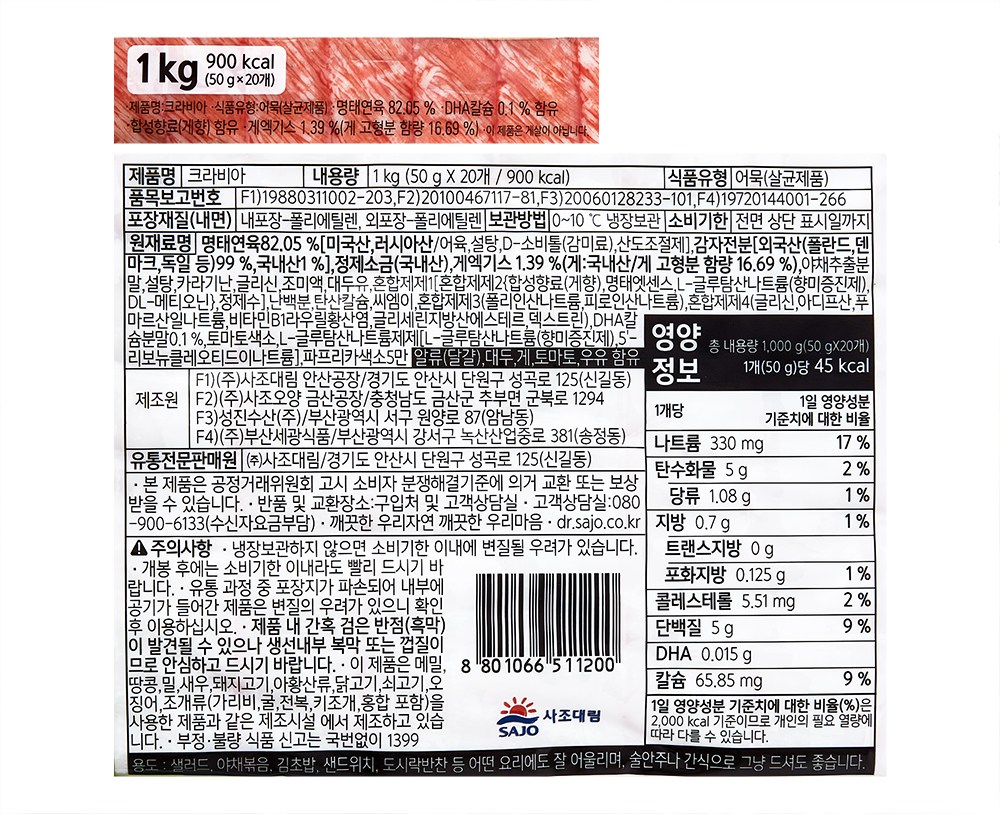 | 제품명 | 크라비아 | 식품의 유형 | 어묵(살균제품) |