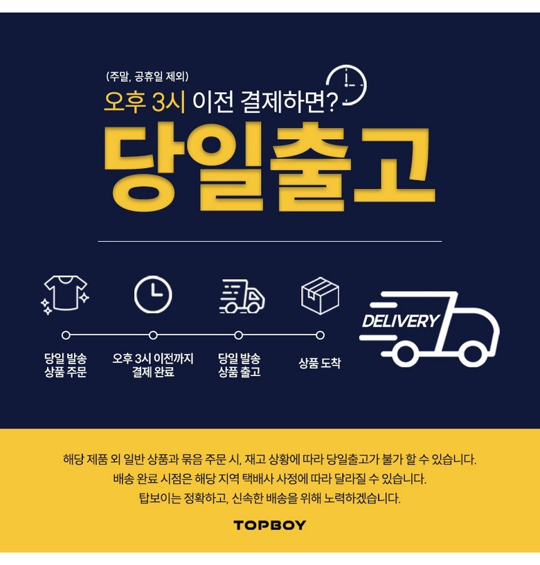 | 배송기간 | ㆍ도서산간 지역 등은 배송에 3-5일이 더 소요될 수 있습니다. - 천재지변, 물량 수급 변동 등 예외적인 사유 발생 시, 다소 지연될 수 있는 점 양해 부탁드립니다. | ||