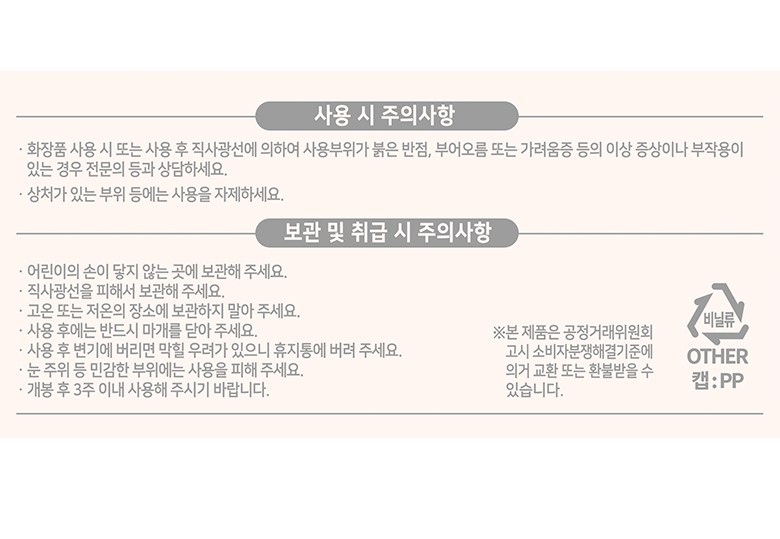 | 용량(중량) | 194 g (화장품 법령에 의한 액상의 중량) | 제품 주요 사양 | 모든 피부용 |
