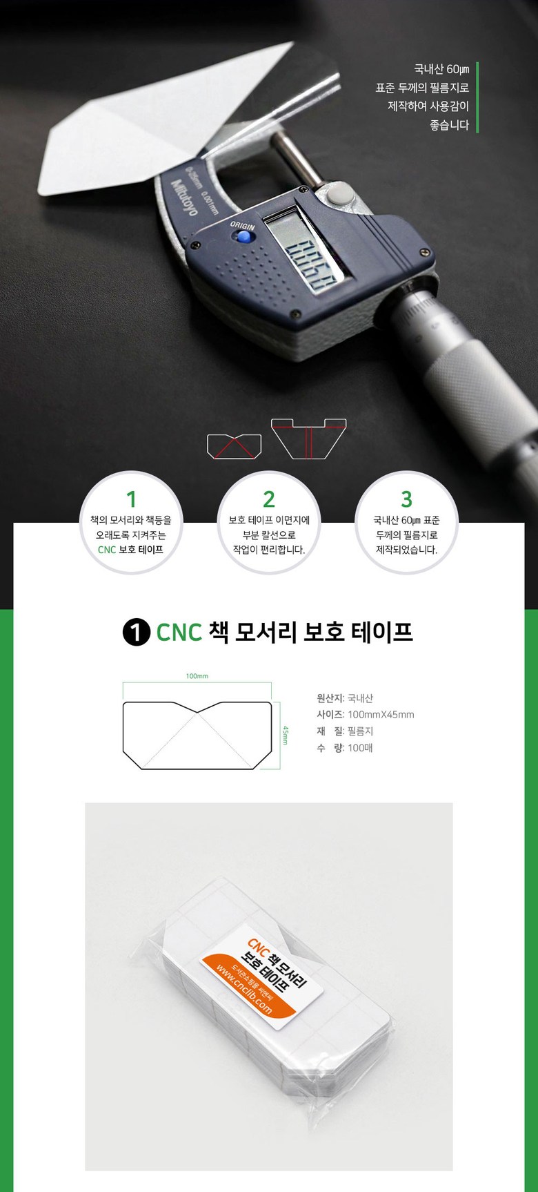 | 품명 및 모델명 | CNC 책보호용 테이프 100매 | 인증/허가 사항 | 해당사항없슴 |