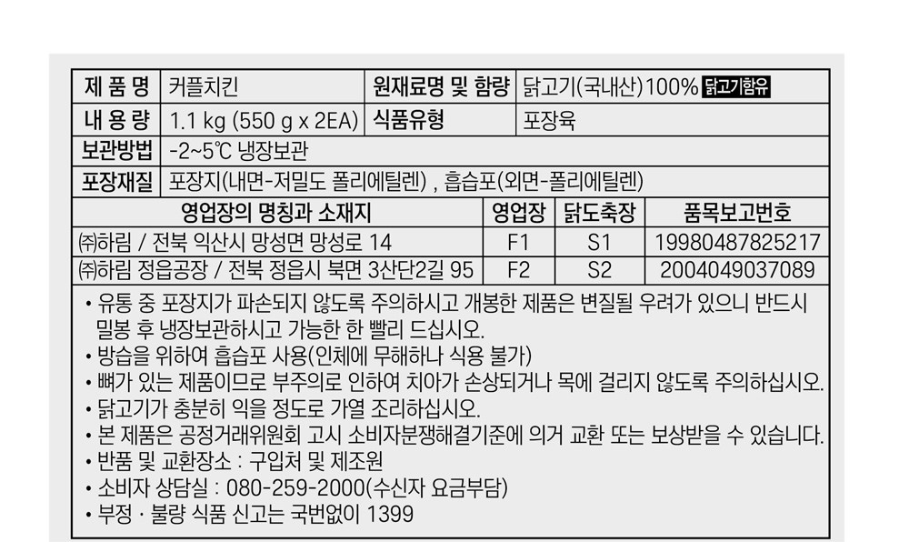 신선하고 깨끗한 영계를 두 마리 담아 더욱 풍성한 하림의 커플 치킨이에요. 살은 쫄깃쫄깃 부드러운 데다, 고소하고 담백한 풍미까지 듬뿍 머금고 있죠. 통째로 구워 로스트 치킨으로 즐겨도 좋고, 백숙이나 삼계탕을 만들어도 좋답니다.