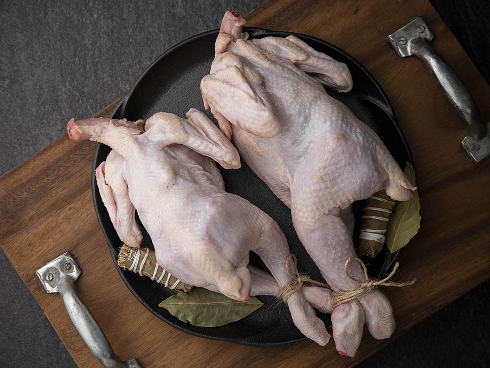 신선한 닭 두 마리를 담은 제품