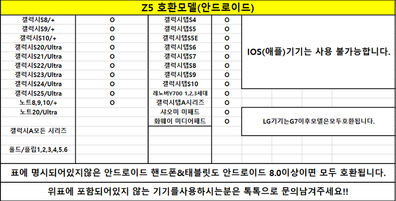 애플(아이폰/아이패드) 기기는 호환 불가능합니다.