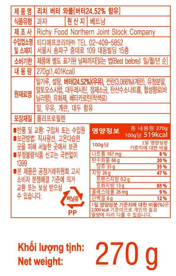| 포장단위별 내용물의 용량(중량), 수량 | 270g x 3개 | 원재료명 및 함량 | 컨텐츠 참조 |
