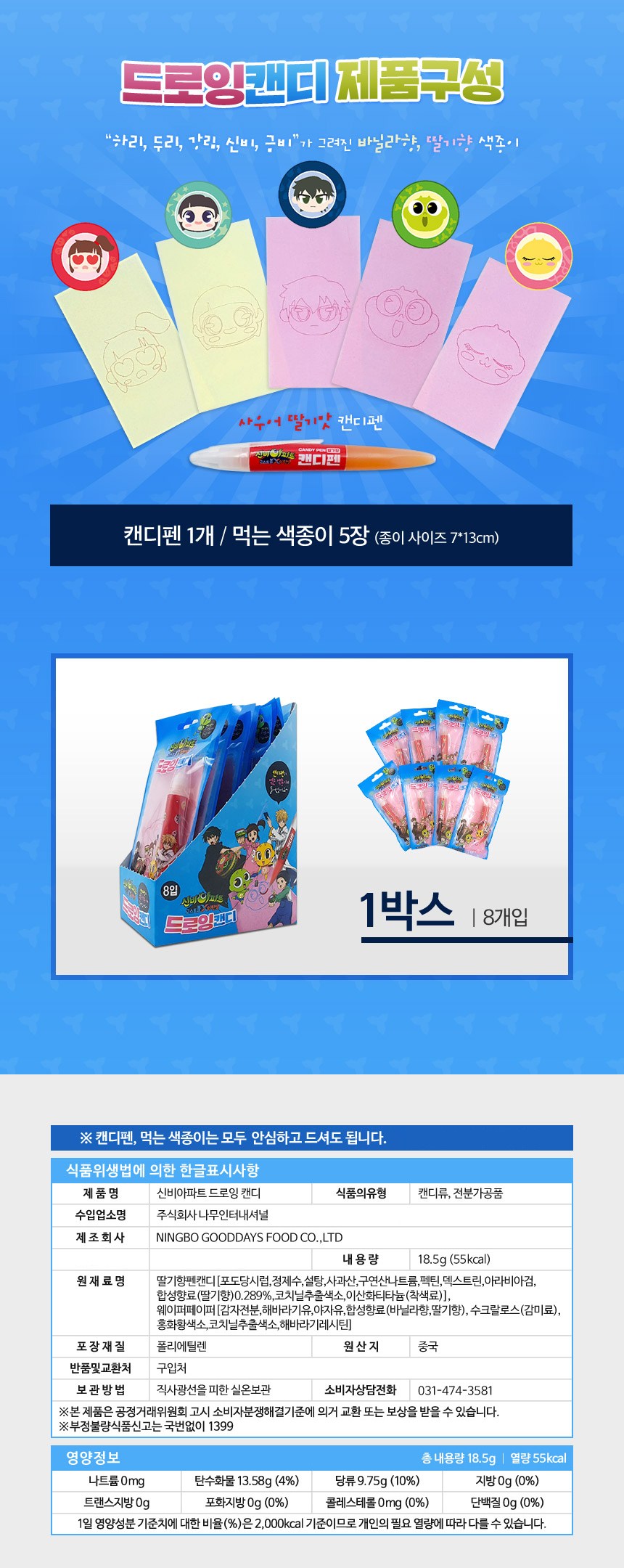 | 제품명 | 신비아파트 드로잉 캔디 | 식품의 유형 | 캔디류,전분가공품 |