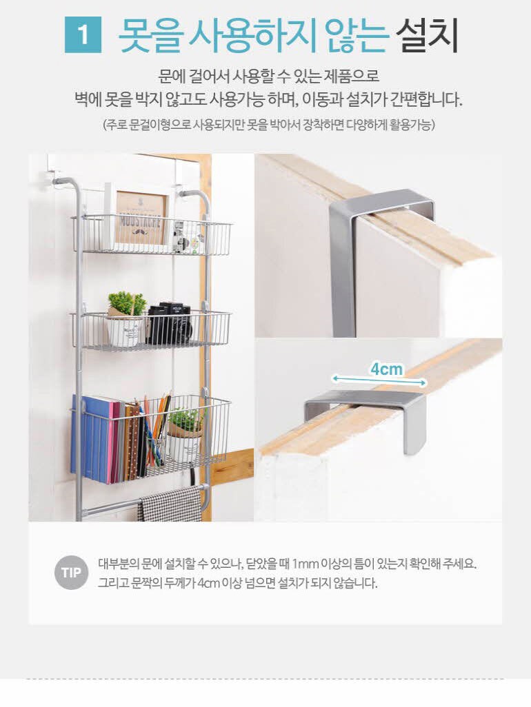 - 편하게 문에 걸어서 사용할 수 있어 설치가 간편