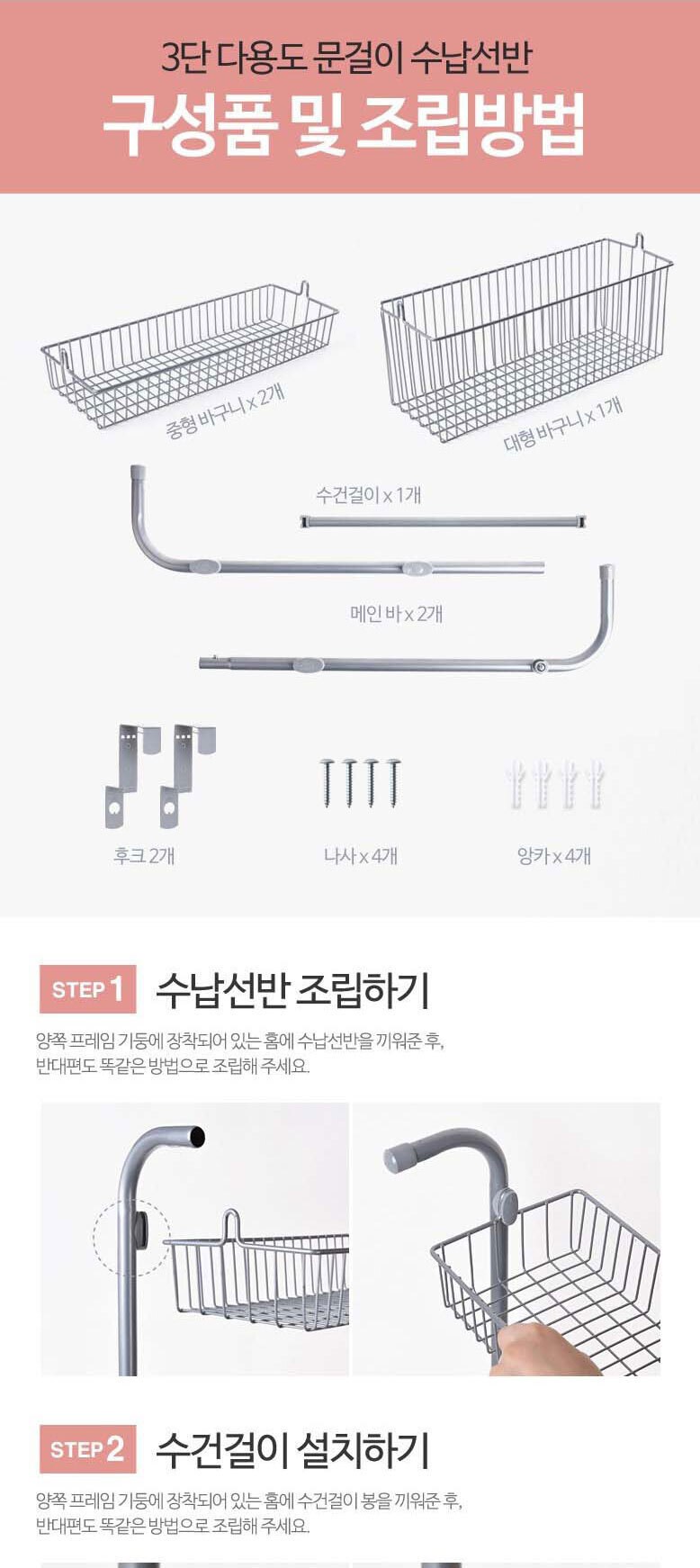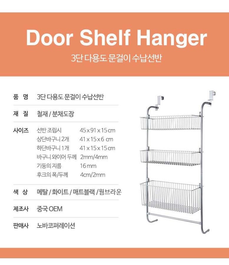 | 품명 및 모델명 | 노바리빙 3단 다용도 문걸이 수납선반 | 인증/허가 사항 | 해당없음 |