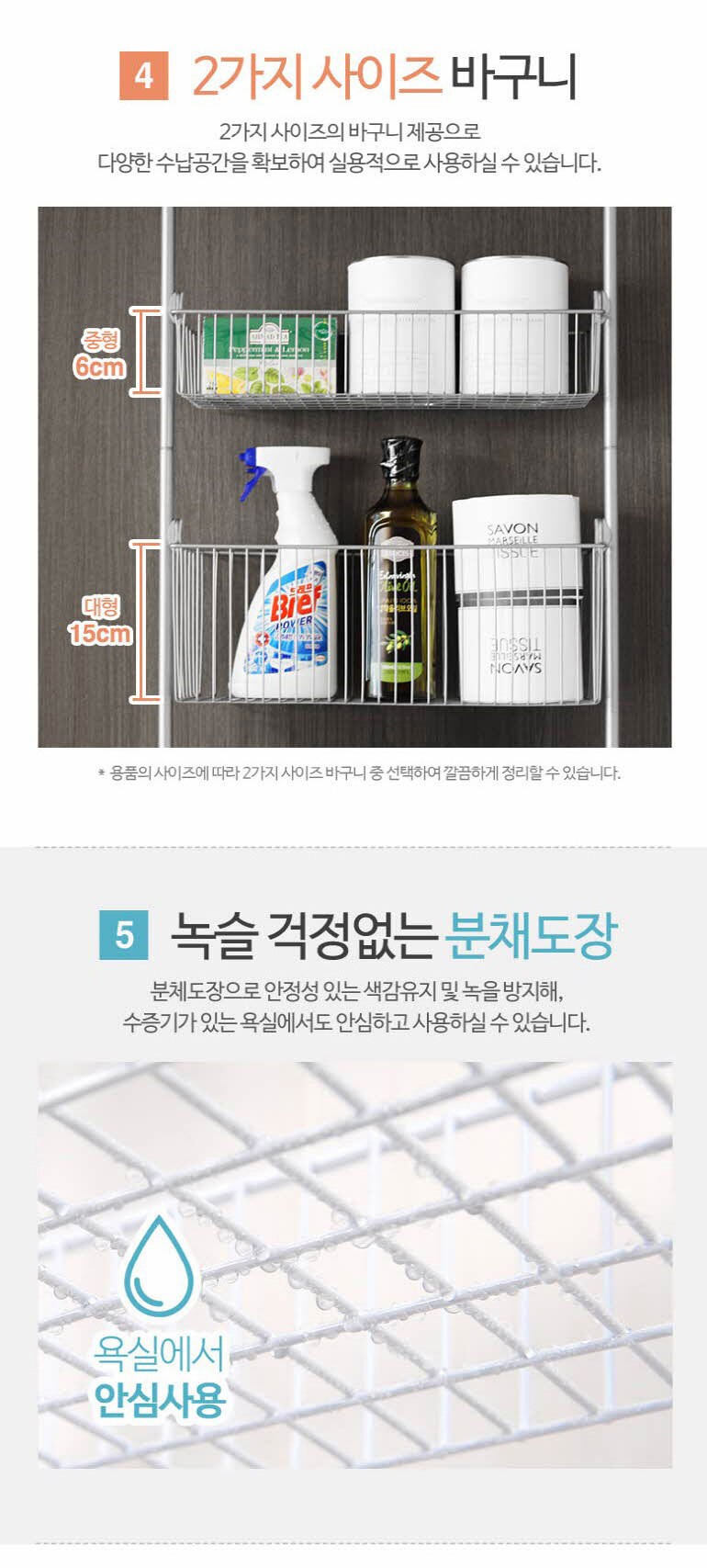 - 바닥은 격자로 제작되어 안정적인 물건 수납이 가능