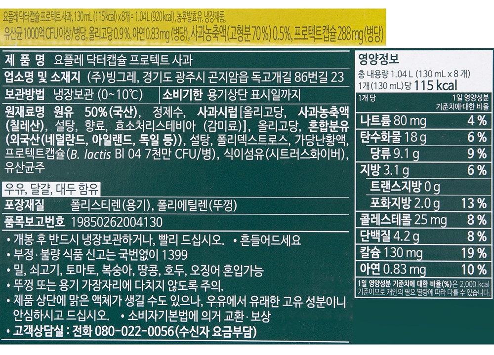 | 제품명 | 요플레 닥터캡슐 프로텍트 사과 | 식품의 유형 | 농후발효유 |
